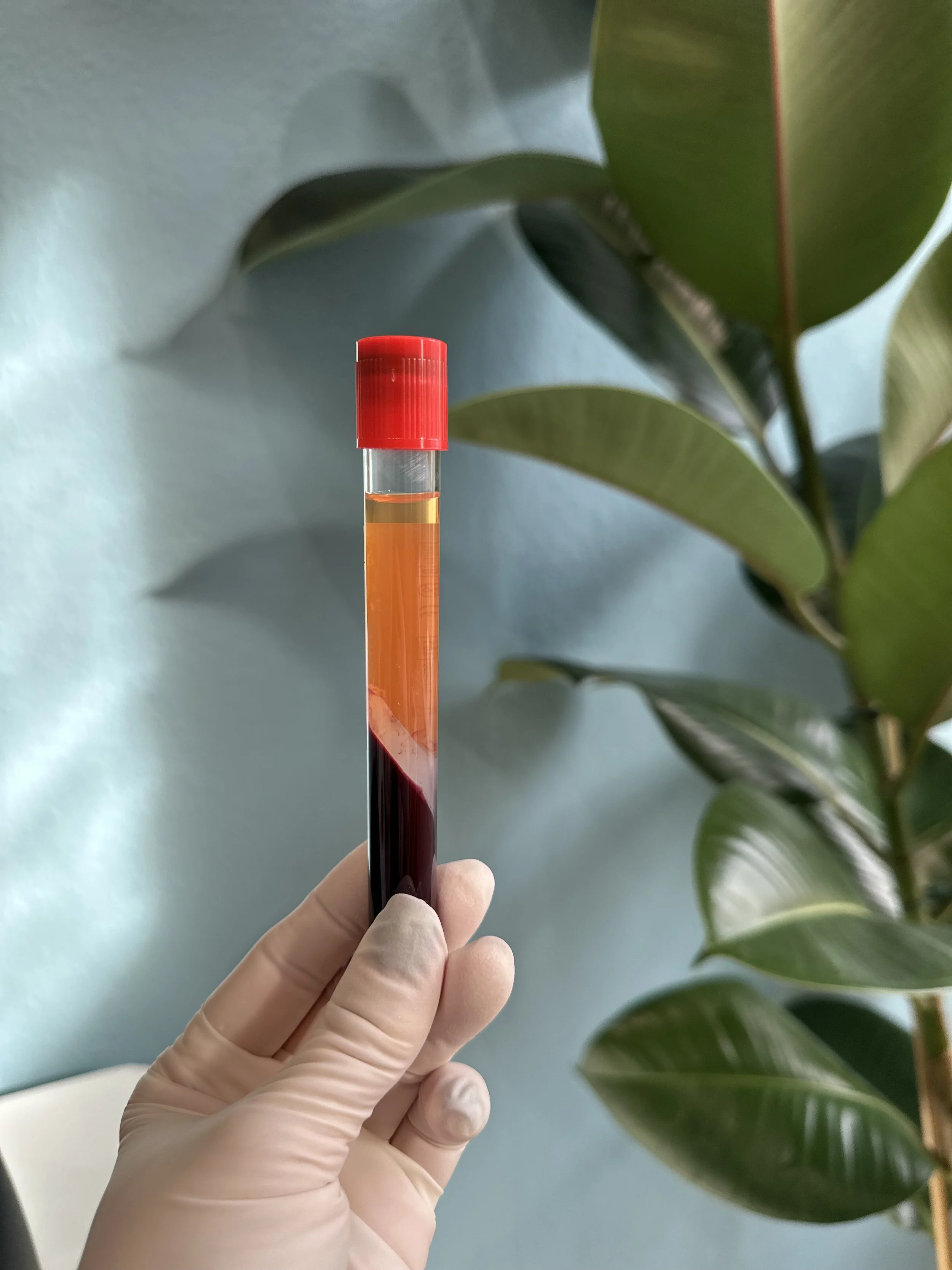 Behandlingen starter med, at vi tager en lille blodprøve, som centrifugeres for at udvinde PRF.